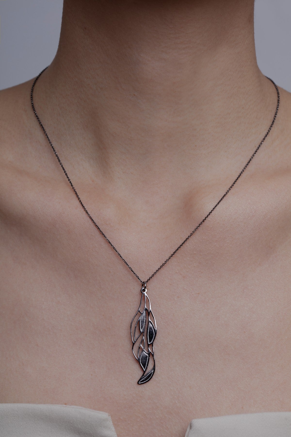 The inspiration for the Night Tree collection comes from a lifelong passion: my love for trees and for capturing their forms in black and white drawings. The idea came from a story I started writing years ago about a magical tree that only appears at night. This pendant is a modern take on those original drawings, with flowing, sculptural lines designed to be a piece of wearable art.