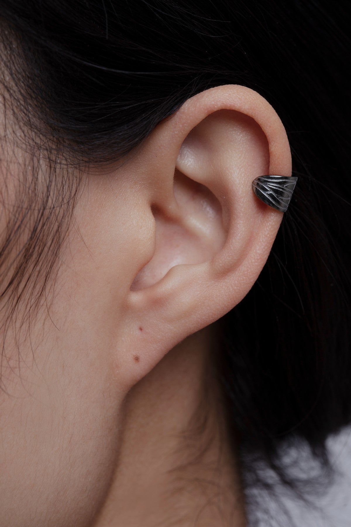 The inspiration for the Night Tree collection comes from a lifelong passion: my love for trees and for capturing their forms in black and white drawings. The idea came from a story I started writing years ago about a magical tree that only appears at night. This ear cuff is a modern take on those original drawings, with flowing, sculptural lines designed to hug the curve of your ear as a piece of wearable art.